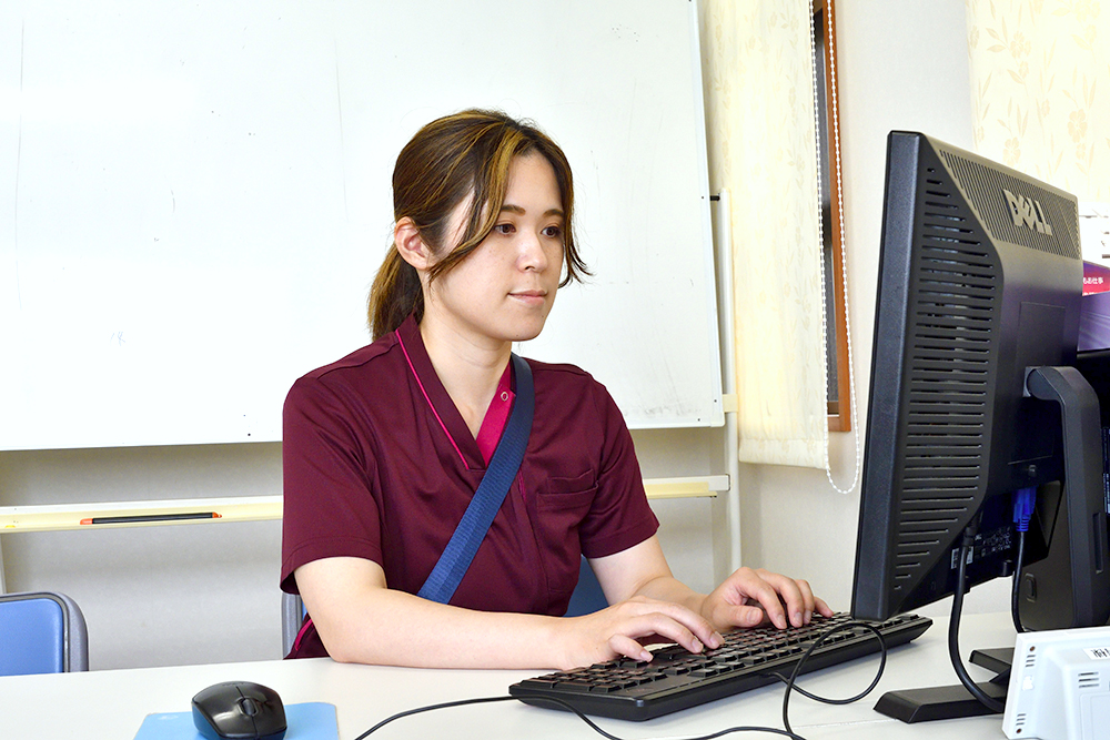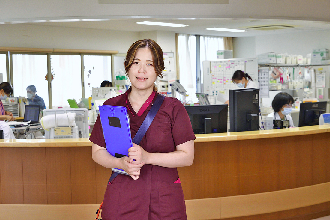 千秋病院は地域の方々のご支援で建てられました。その恩返しをするために、グループ全体で、医療、看護、介護を提供して地域に貢献している姿勢に共感して入職しました。看護の勉強中は尾張健友会の奨学金制度を活用し、奨学生対象のイベントにもよく参加しました。入職時、同期の半数がイベントで知り合った奨学生だったので、心強く感じたのを覚えています。